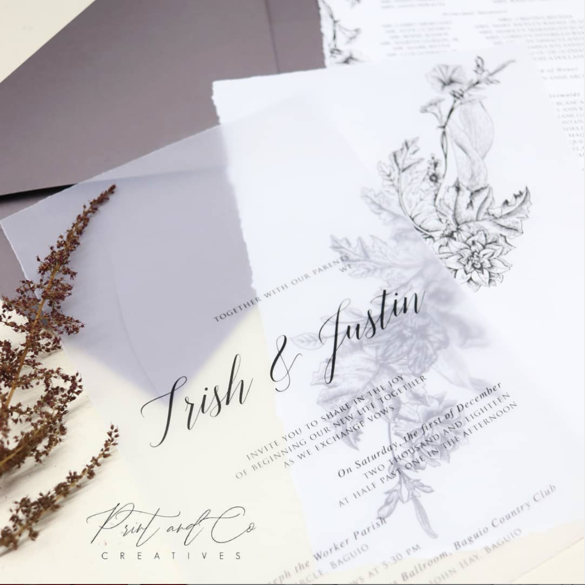 We design and produce wedding invitations, birth announcements, birthday party invitations, baby shower invitations, as well as thank you cards, notecards, business cards, and a lot more.